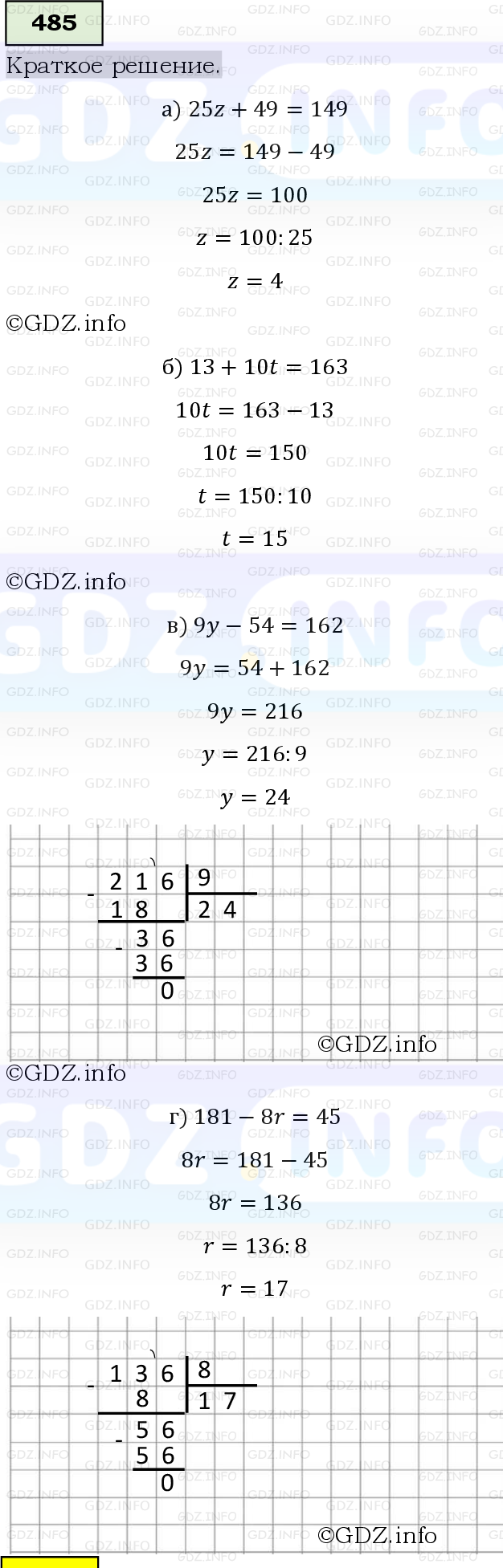 ГДЗ (готовое домашние задание из решебника) по Математике 5 класса авторов Виленкин Н.Я. Жохов В.И. Чесноков А.С. 2013 / 2019 / 2023г. ФГОС на Номер №485, Часть 1.Условие 2019 г.