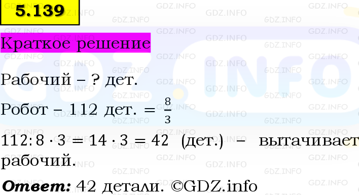 5.139. Робот вытачивает 112 деталей, что составляет 8/3 деталей, вытачиваемых за такое же время рабочим. Сколько деталей вытачивает рабочий? *