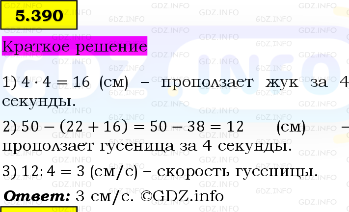 5.390. Жук и гусеница ползут по стволу дерева в противоположных направлениях. Жук находится на 22 см выше гусеницы (рис. 54) и ползёт со скоростью 4 см/с. С какой скоростью ползёт гусеница, если 50 см между ней и жуком будет через 4 с? *