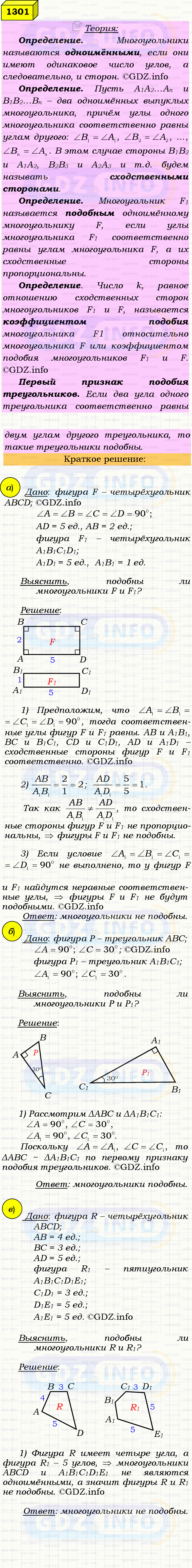 ГДЗ (готовое домашние задание из решебника) по Геометрии 7-8-9 класса авторов Л.С. Атанасян, В. Ф. Бутузов, С. Б. Кадомцев, 2013г. / 2023г. на Номер №1301.Условие 2013 г.