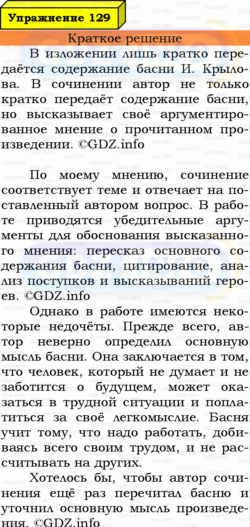 ГДЗ (готовое домашние задание из решебника) по Русскому языку 7 класса авторов М.Т. Баранов, Т.А. Ладыженская, Л.А. Тростенцова, 2013г. / 2019г. / 2023г. на Номер №129.Условие 2023 г.