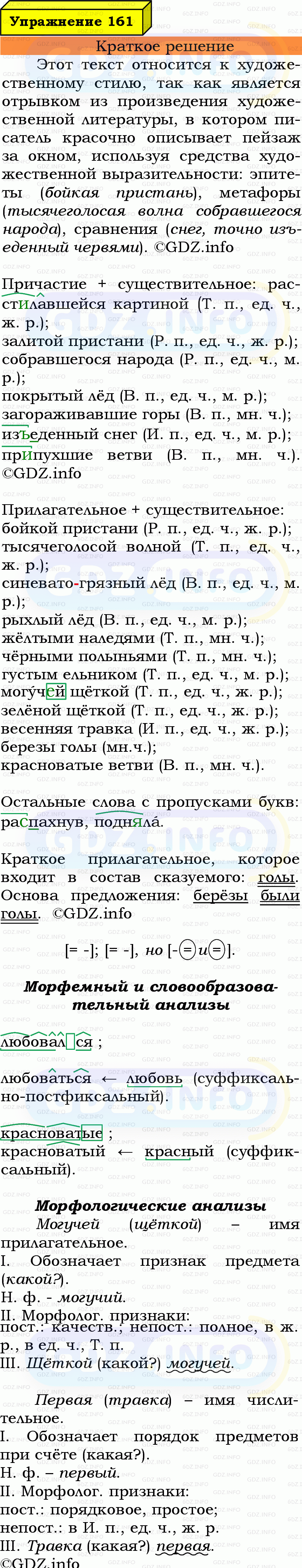 ГДЗ (готовое домашние задание из решебника) по Русскому языку 7 класса авторов М.Т. Баранов, Т.А. Ладыженская, Л.А. Тростенцова, 2013г. / 2019г. / 2023г. на Номер №161.Условие 2023 г.