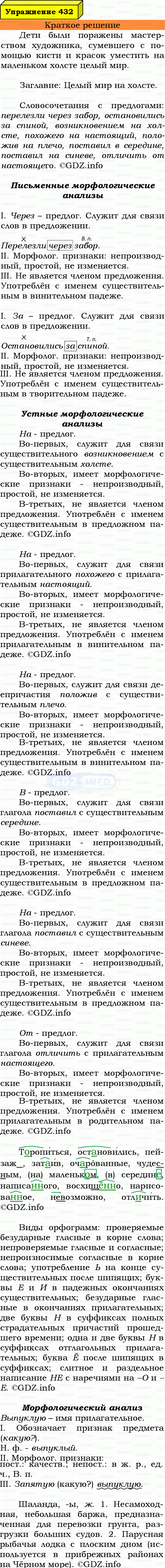 ГДЗ (готовое домашние задание из решебника) по Русскому языку 7 класса авторов М.Т. Баранов, Т.А. Ладыженская, Л.А. Тростенцова, 2013г. / 2019г. / 2023г. на Номер №432.Условие 2023 г.