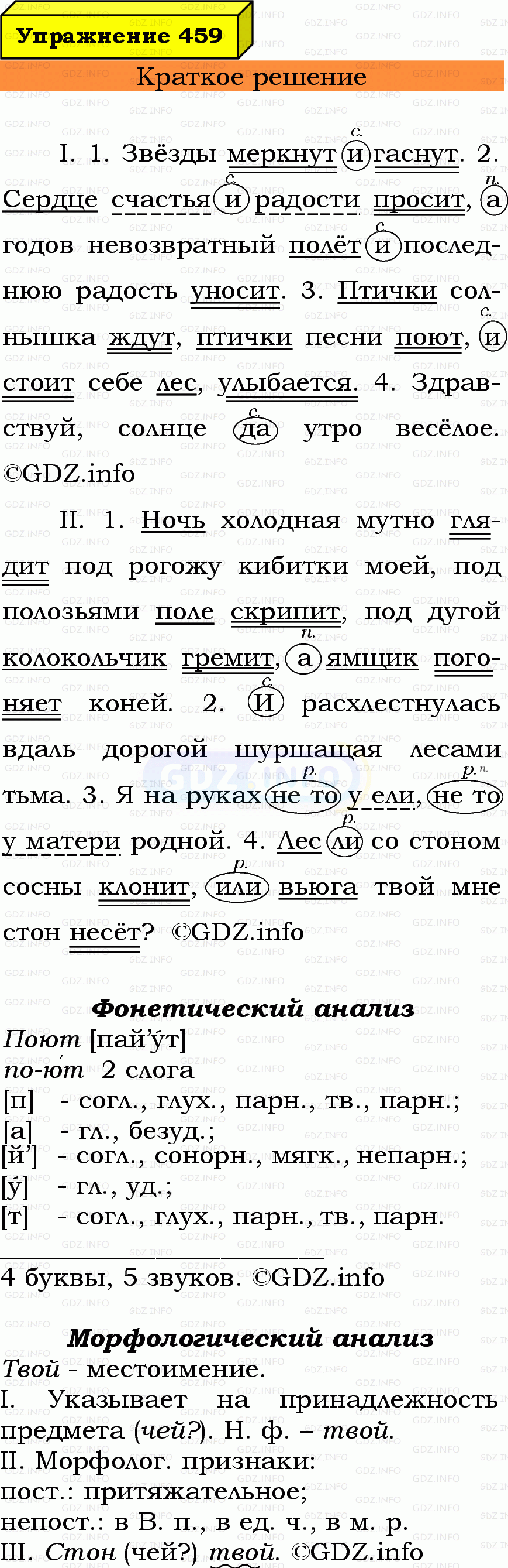 ГДЗ (готовое домашние задание из решебника) по Русскому языку 7 класса авторов М.Т. Баранов, Т.А. Ладыженская, Л.А. Тростенцова, 2013г. / 2019г. / 2023г. на Номер №459.Условие 2023 г.