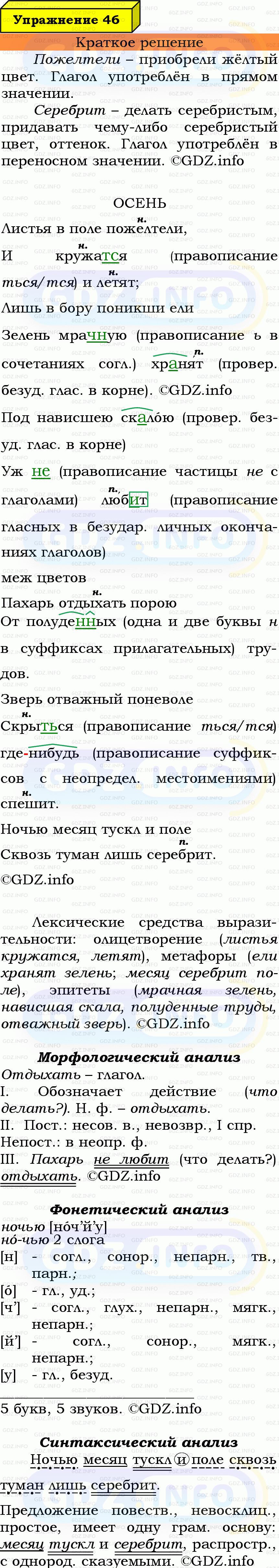 ГДЗ (готовое домашние задание из решебника) по Русскому языку 7 класса авторов М.Т. Баранов, Т.А. Ладыженская, Л.А. Тростенцова, 2013г. / 2019г. / 2023г. на Номер №46.Условие 2023 г.