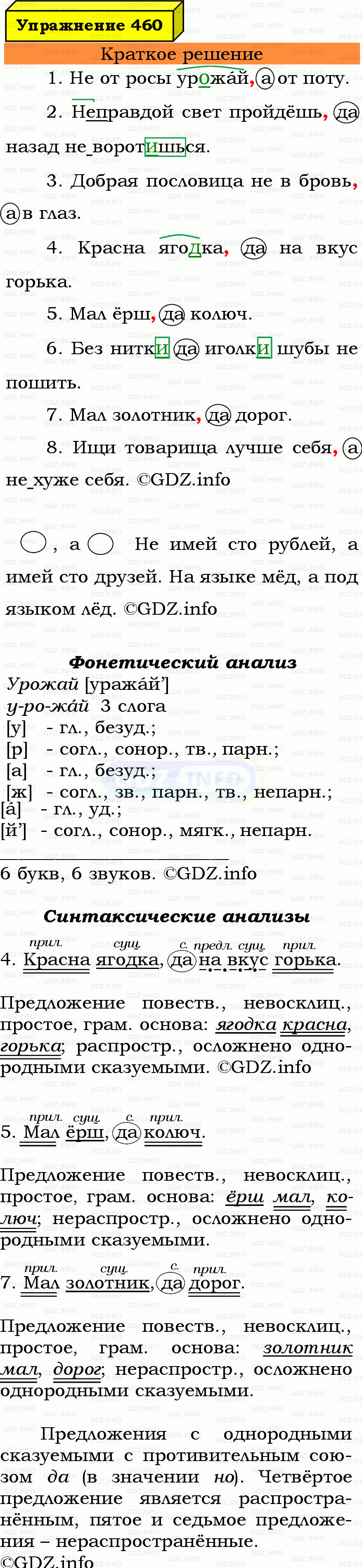 ГДЗ (готовое домашние задание из решебника) по Русскому языку 7 класса авторов М.Т. Баранов, Т.А. Ладыженская, Л.А. Тростенцова, 2013г. / 2019г. / 2023г. на Номер №460.Условие 2023 г.