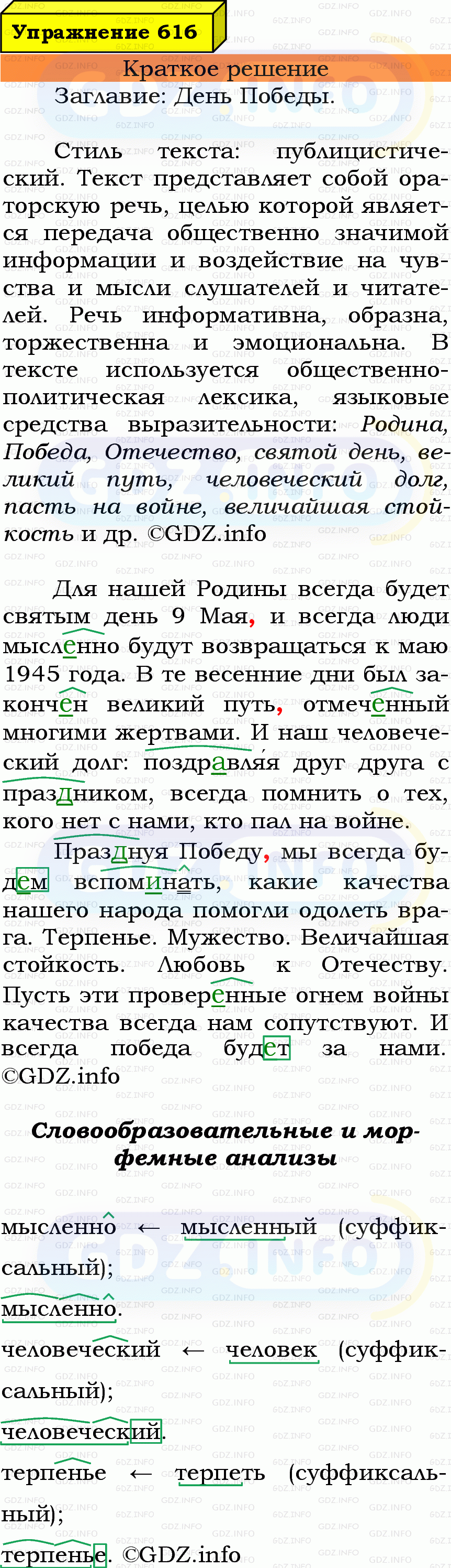 Ответ на Номер №616 из ГДЗ по Русскому языку 7 класс: Ладыженская Т.А.