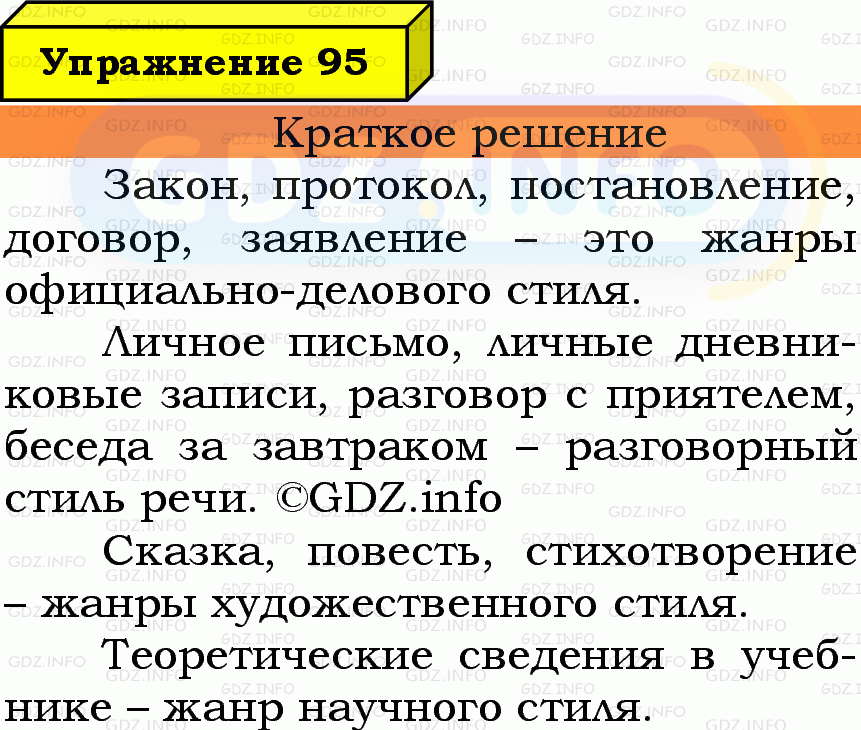 ГДЗ (готовое домашние задание из решебника) по Русскому языку 7 класса авторов М.Т. Баранов, Т.А. Ладыженская, Л.А. Тростенцова, 2013г. / 2019г. / 2023г. на Номер №95.Условие 2023 г.