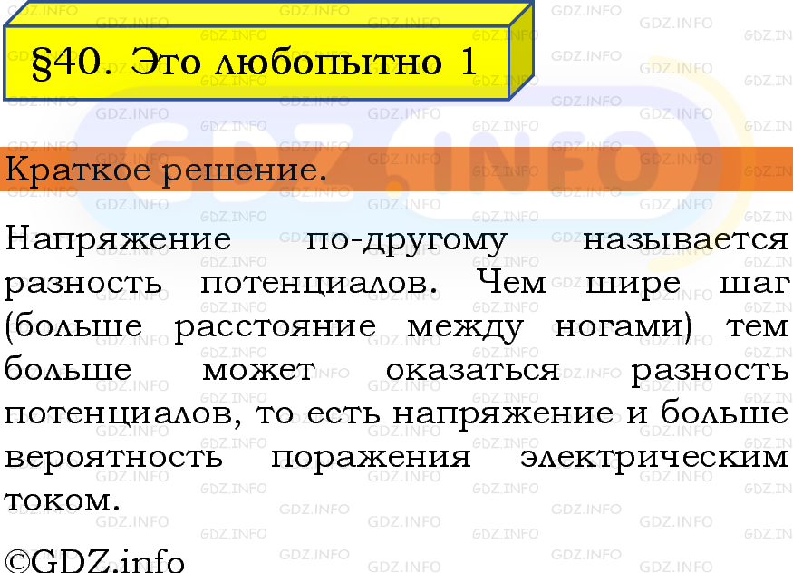 ГДЗ (готовое домашние задание из решебника) по Физике 8 класса авторов И. М. Перышкин, А. И. Иванов, Просвещение, 2023-2025г. ФГОС на Это любопытно №1, § 40. Закон Ома для участка цепи.
