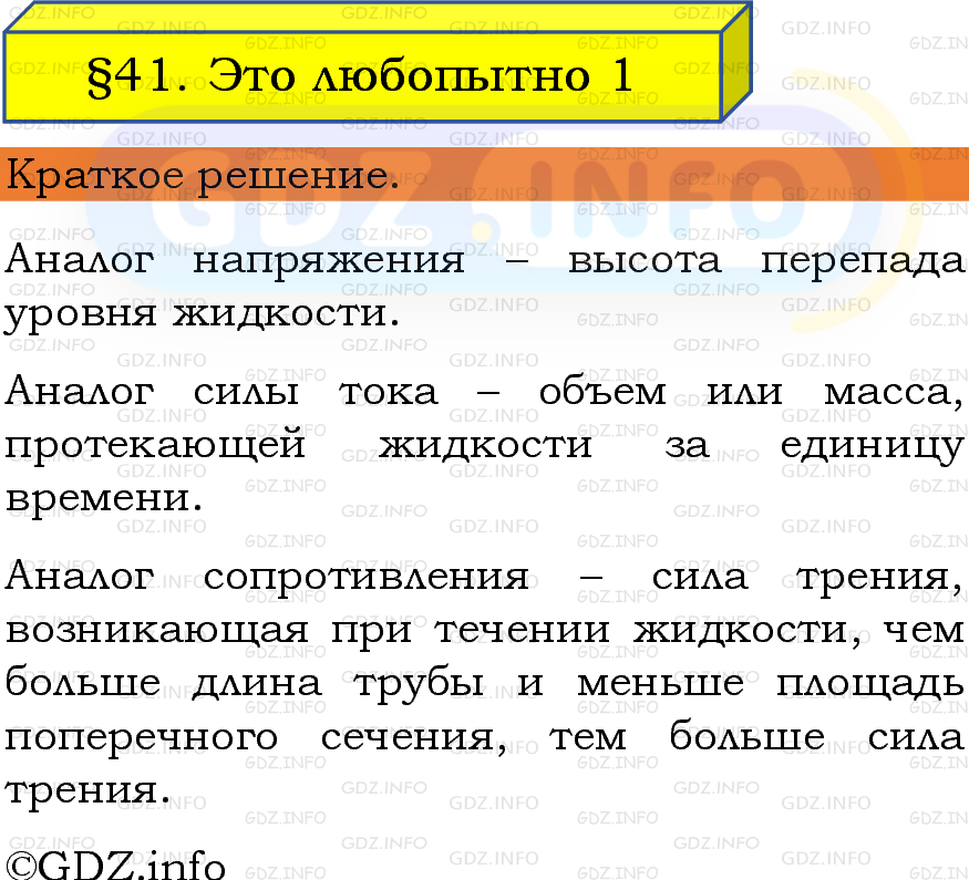 ГДЗ (готовое домашние задание из решебника) по Физике 8 класса авторов И. М. Перышкин, А. И. Иванов, Просвещение, 2023-2025г. ФГОС на Это любопытно №1, § 41. Расчёт сопротивления проводника. Удельное сопротивление.