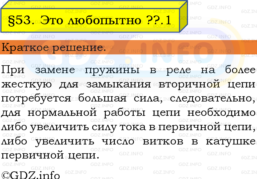 ГДЗ (готовое домашние задание из решебника) по Физике 8 класса авторов И. М. Перышкин, А. И. Иванов, Просвещение, 2023-2025г. ФГОС на Это любопытно №1, § 53. Магнитное поле катушки с током. Электромагниты.