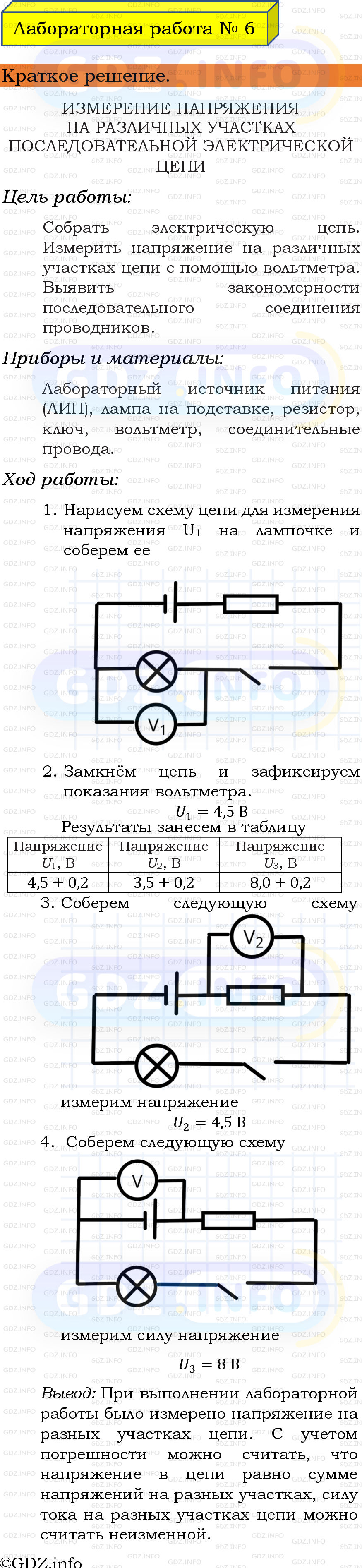 Ответ на Лабораторная работа №6 из ГДЗ по Физике 8 класс: Пёрышкин, Иванов