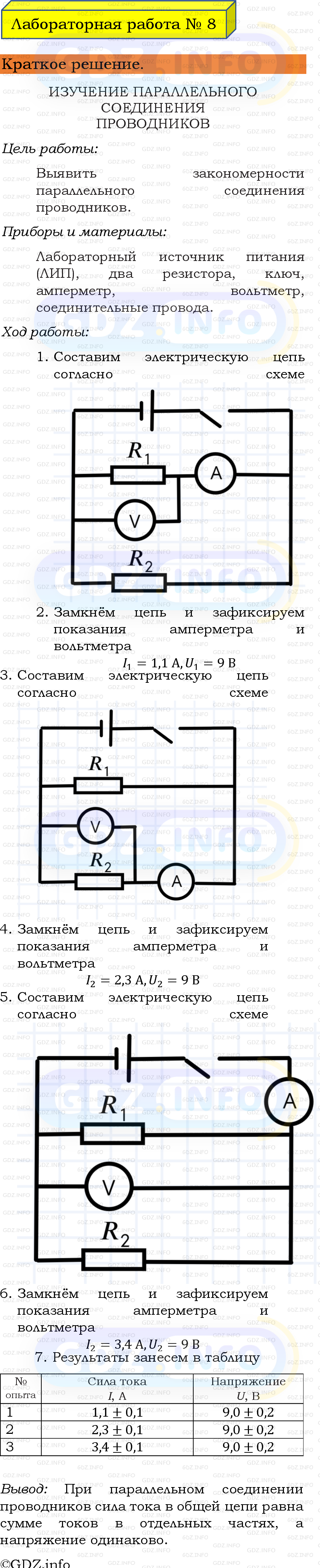 Ответ на Лабораторная работа №8 из ГДЗ по Физике 8 класс: Пёрышкин, Иванов
