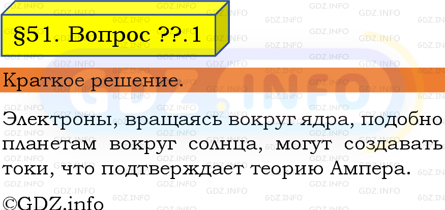 ГДЗ (готовое домашние задание из решебника) по Физике 8 класса авторов И. М. Перышкин, А. И. Иванов, Просвещение, 2023-2025г. ФГОС на Обсуди с товарищами №1, § 51. Магнитное поле тока.