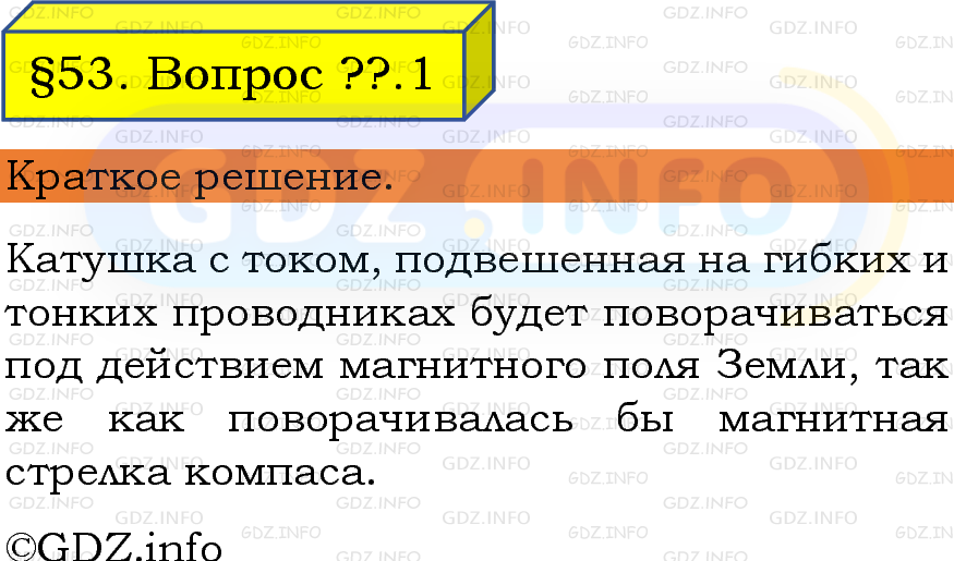 ГДЗ (готовое домашние задание из решебника) по Физике 8 класса авторов И. М. Перышкин, А. И. Иванов, Просвещение, 2023-2025г. ФГОС на Обсуди с товарищами №1, § 53. Магнитное поле катушки с током. Электромагниты.