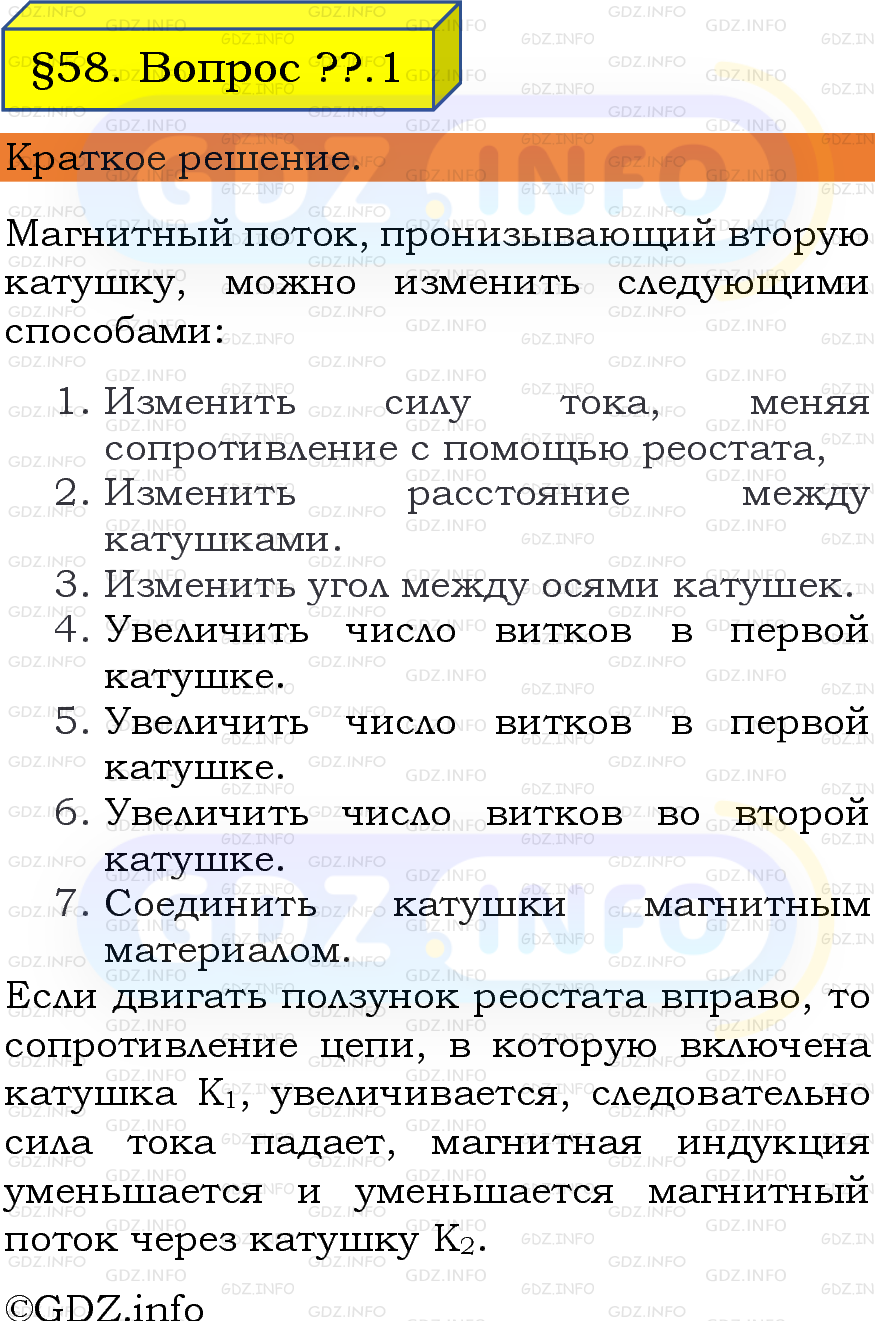 ГДЗ (готовое домашние задание из решебника) по Физике 8 класса авторов И. М. Перышкин, А. И. Иванов, Просвещение, 2023-2025г. ФГОС на Обсуди с товарищами №1, § 58. Магнитный поток.