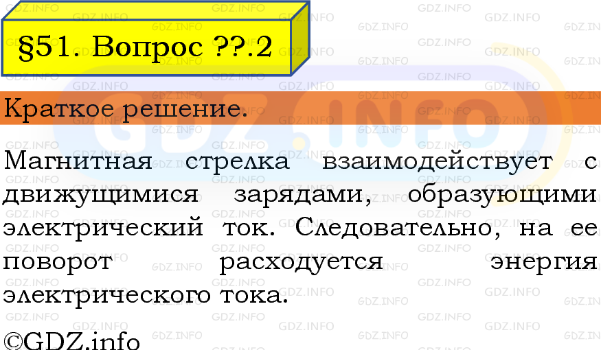 ГДЗ (готовое домашние задание из решебника) по Физике 8 класса авторов И. М. Перышкин, А. И. Иванов, Просвещение, 2023-2025г. ФГОС на Обсуди с товарищами №2, § 51. Магнитное поле тока.