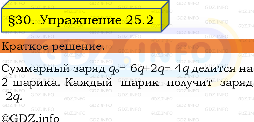 ГДЗ (готовое домашние задание из решебника) по Физике 8 класса авторов И. М. Перышкин, А. И. Иванов, Просвещение, 2023-2025г. ФГОС на Упражнение 25 №2, § 32. Закон сохранения электрического заряда.