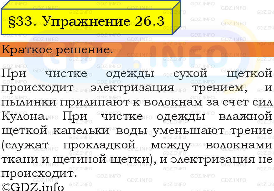 ГДЗ (готовое домашние задание из решебника) по Физике 8 класса авторов И. М. Перышкин, А. И. Иванов, Просвещение, 2023-2025г. ФГОС на Упражнение 26 №3, § 33. Применение статического электричества в технике и медицине.