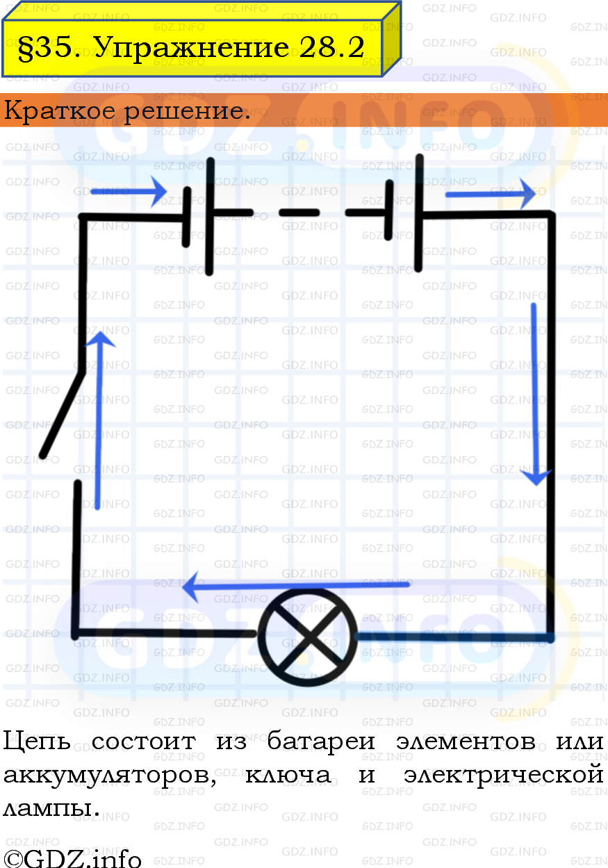 ГДЗ (готовое домашние задание из решебника) по Физике 8 класса авторов И. М. Перышкин, А. И. Иванов, Просвещение, 2023-2025г. ФГОС на Упражнение 28 №2, § 35. Электрическая цепь и её составные части.