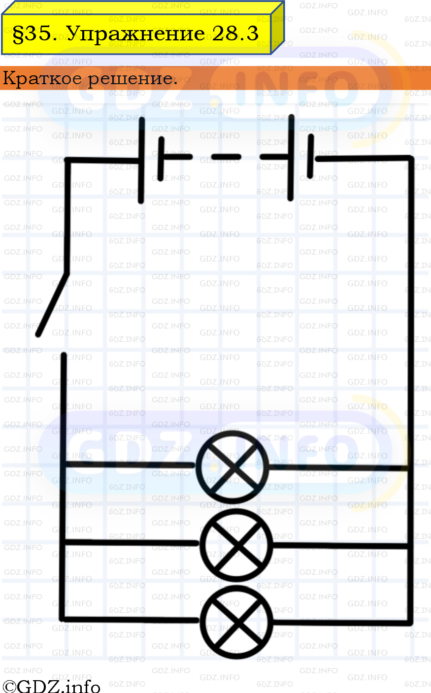 ГДЗ (готовое домашние задание из решебника) по Физике 8 класса авторов И. М. Перышкин, А. И. Иванов, Просвещение, 2023-2025г. ФГОС на Упражнение 28 №3, § 35. Электрическая цепь и её составные части.