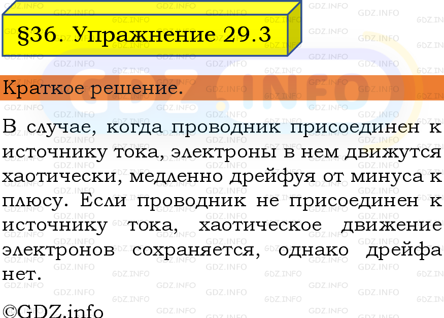 ГДЗ (готовое домашние задание из решебника) по Физике 8 класса авторов И. М. Перышкин, А. И. Иванов, Просвещение, 2023-2025г. ФГОС на Упражнение 29 №3, § 36. Электрический ток в металлах.