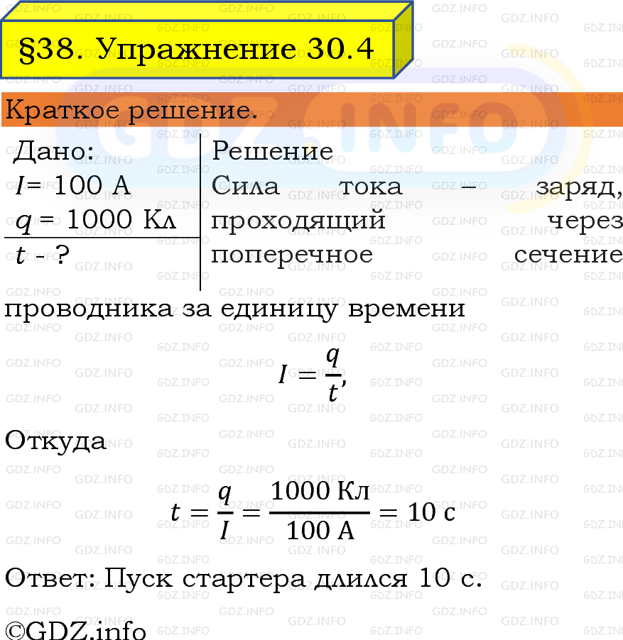 ГДЗ (готовое домашние задание из решебника) по Физике 8 класса авторов И. М. Перышкин, А. И. Иванов, Просвещение, 2023-2025г. ФГОС на Упражнение 30 №4, § 38. Сила тока. Единицы силы тока. Амперметр.