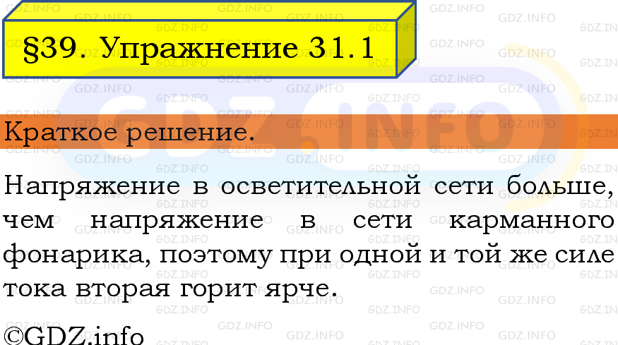 ГДЗ (готовое домашние задание из решебника) по Физике 8 класса авторов И. М. Перышкин, А. И. Иванов, Просвещение, 2023-2025г. ФГОС на Упражнение 31 №1, § 39. Электрическое напряжение. Вольтметр.