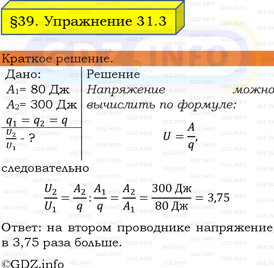 ГДЗ (готовое домашние задание из решебника) по Физике 8 класса авторов И. М. Перышкин, А. И. Иванов, Просвещение, 2023-2025г. ФГОС на Упражнение 31 №3, § 39. Электрическое напряжение. Вольтметр.