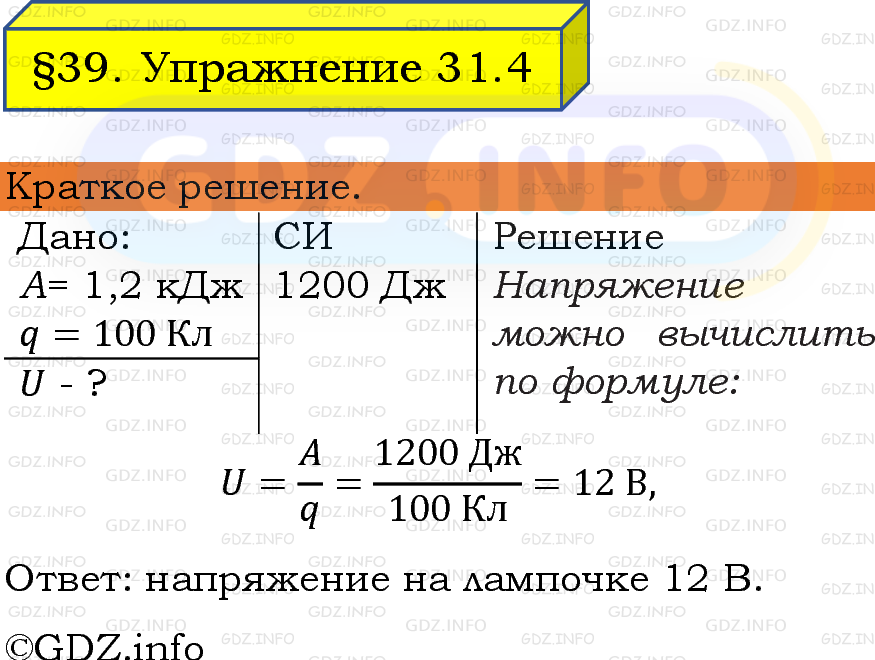ГДЗ (готовое домашние задание из решебника) по Физике 8 класса авторов И. М. Перышкин, А. И. Иванов, Просвещение, 2023-2025г. ФГОС на Упражнение 31 №4, § 39. Электрическое напряжение. Вольтметр.