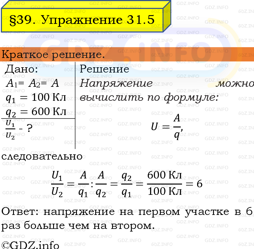 ГДЗ (готовое домашние задание из решебника) по Физике 8 класса авторов И. М. Перышкин, А. И. Иванов, Просвещение, 2023-2025г. ФГОС на Упражнение 31 №5, § 39. Электрическое напряжение. Вольтметр.