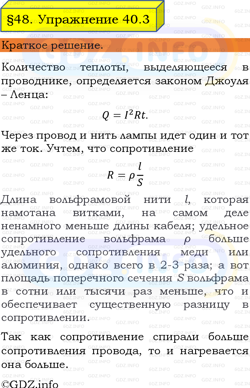 ГДЗ (готовое домашние задание из решебника) по Физике 8 класса авторов И. М. Перышкин, А. И. Иванов, Просвещение, 2023-2025г. ФГОС на Упражнение 40 №3, § 48. Лампа накаливания. Электрические нагревательные приборы.