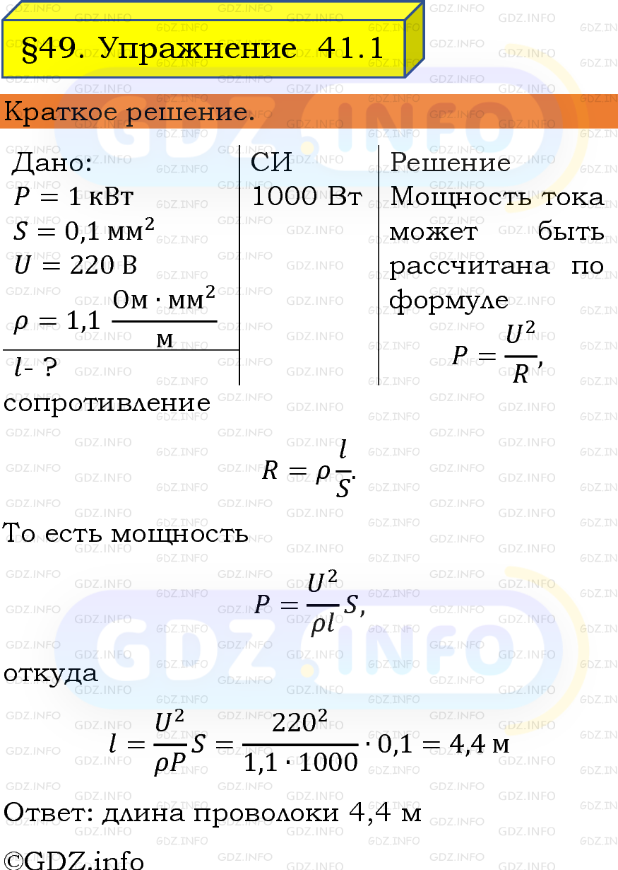 ГДЗ (готовое домашние задание из решебника) по Физике 8 класса авторов И. М. Перышкин, А. И. Иванов, Просвещение, 2023-2025г. ФГОС на Упражнение 41 №1, § 49. Короткое замыкание. Предохранители.