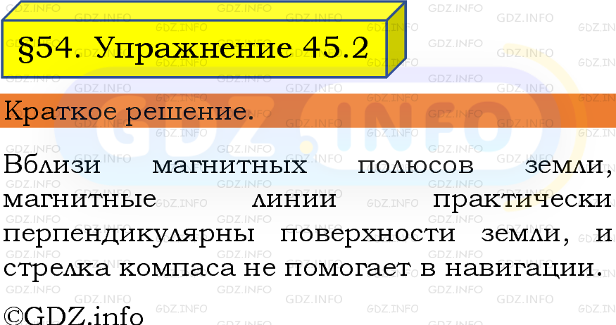 ГДЗ (готовое домашние задание из решебника) по Физике 8 класса авторов И. М. Перышкин, А. И. Иванов, Просвещение, 2023-2025г. ФГОС на Упражнение 45 №2, § 54. Магнитное поле Земли.
