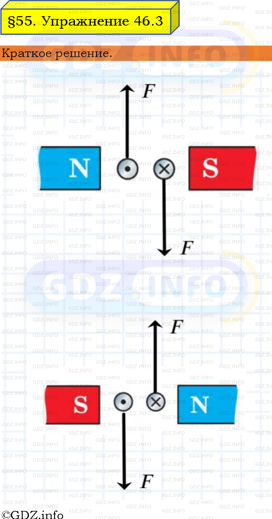 ГДЗ (готовое домашние задание из решебника) по Физике 8 класса авторов И. М. Перышкин, А. И. Иванов, Просвещение, 2023-2025г. ФГОС на Упражнение 46 №3, § 55. Действие магнитного поля на проводник с током.