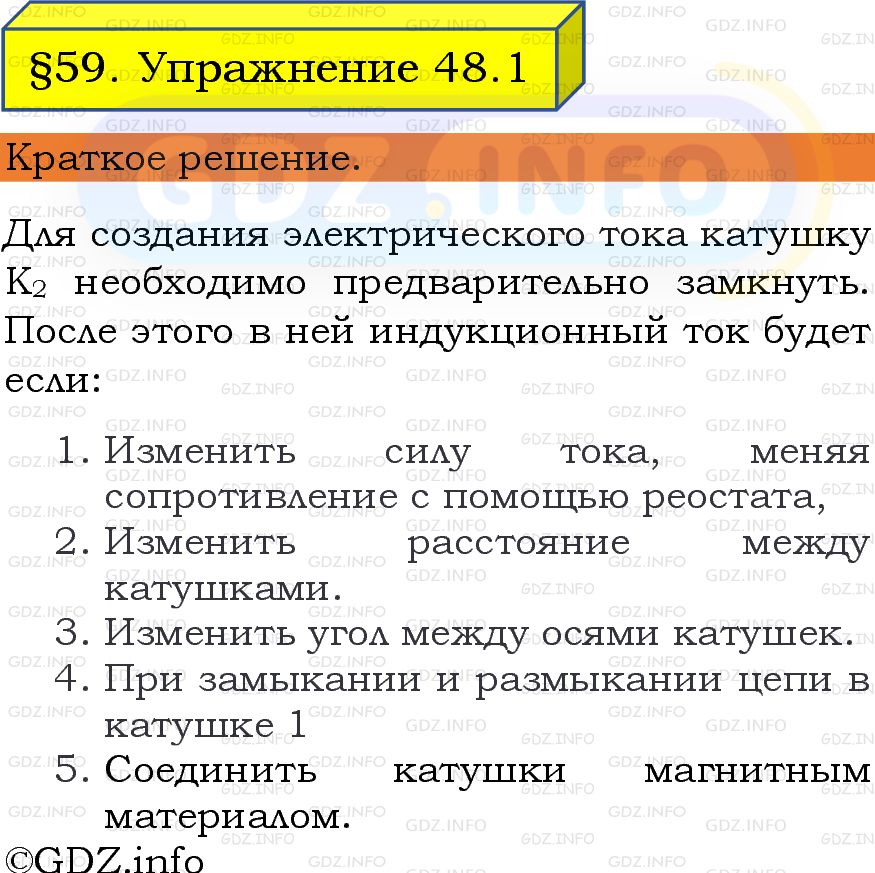 ГДЗ (готовое домашние задание из решебника) по Физике 8 класса авторов И. М. Перышкин, А. И. Иванов, Просвещение, 2023-2025г. ФГОС на Упражнение 48 №1, § 59. Явление электромагнитной индукции.