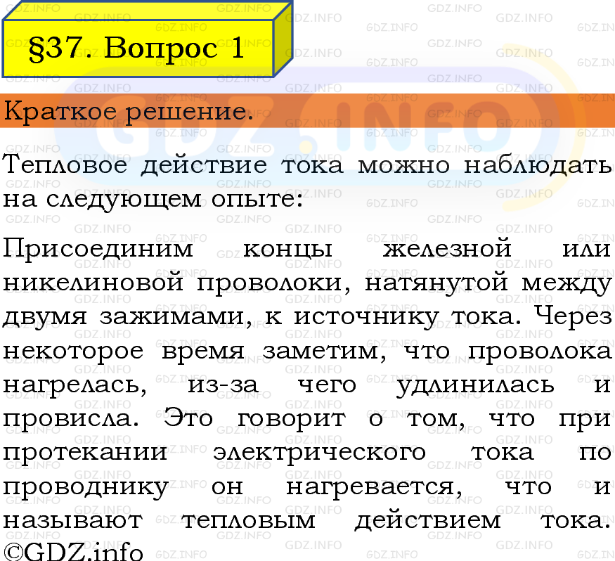 ГДЗ (готовое домашние задание из решебника) по Физике 8 класса авторов И. М. Перышкин, А. И. Иванов, Просвещение, 2023-2025г. ФГОС на Вопрос №1, § 37. Действия электрического тока.
