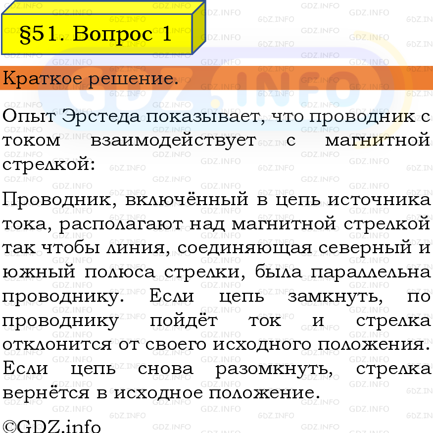ГДЗ (готовое домашние задание из решебника) по Физике 8 класса авторов И. М. Перышкин, А. И. Иванов, Просвещение, 2023-2025г. ФГОС на Вопрос №1, § 51. Магнитное поле тока.