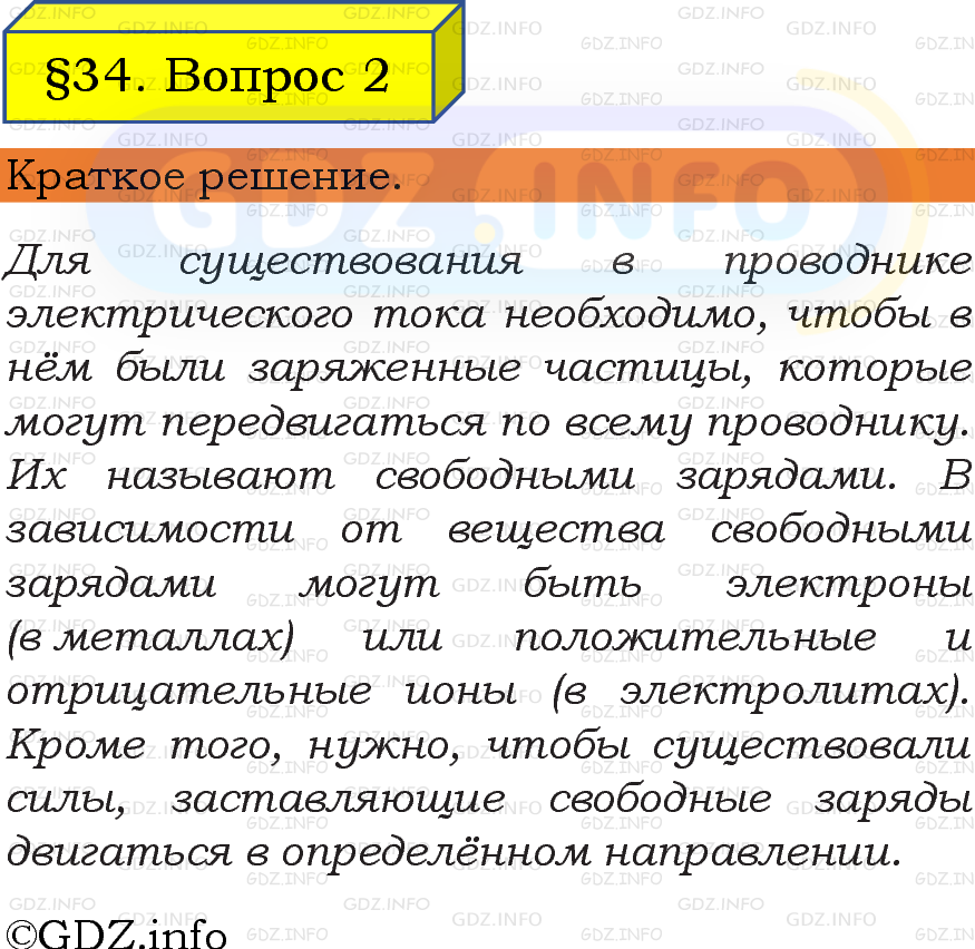 ГДЗ (готовое домашние задание из решебника) по Физике 8 класса авторов И. М. Перышкин, А. И. Иванов, Просвещение, 2023-2025г. ФГОС на Вопрос №2, § 34. Электрический ток. Источники тока.
