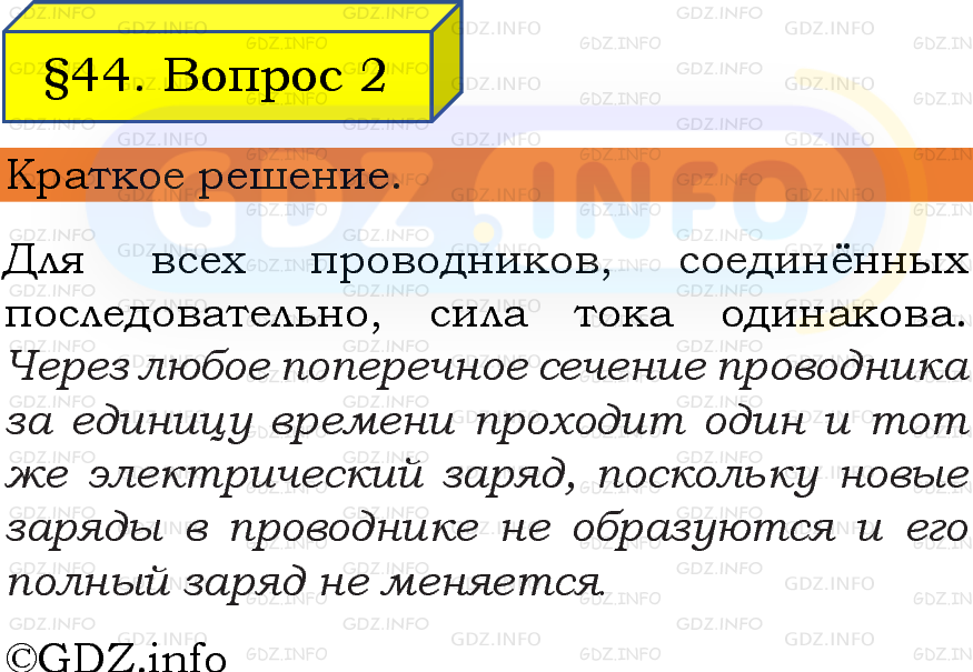 ГДЗ (готовое домашние задание из решебника) по Физике 8 класса авторов И. М. Перышкин, А. И. Иванов, Просвещение, 2023-2025г. ФГОС на Вопрос №2, § 44. Последовательное соединение проводников.