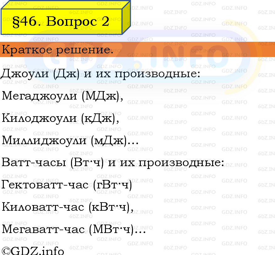 ГДЗ (готовое домашние задание из решебника) по Физике 8 класса авторов И. М. Перышкин, А. И. Иванов, Просвещение, 2023-2025г. ФГОС на Вопрос №2, § 46. Работа и мощность тока.