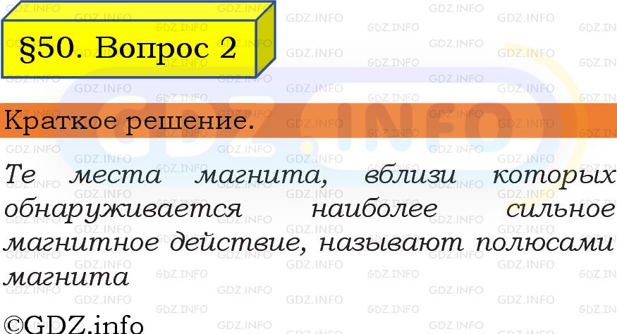ГДЗ (готовое домашние задание из решебника) по Физике 8 класса авторов И. М. Перышкин, А. И. Иванов, Просвещение, 2023-2025г. ФГОС на Вопрос №2, § 50. Постоянные магниты. Магнитное поле постоянных магнитов.
