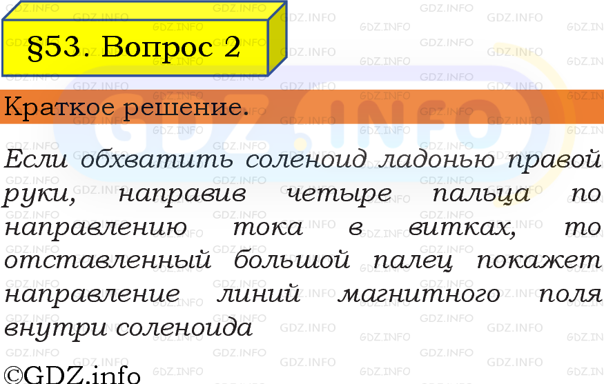 ГДЗ (готовое домашние задание из решебника) по Физике 8 класса авторов И. М. Перышкин, А. И. Иванов, Просвещение, 2023-2025г. ФГОС на Вопрос №2, § 53. Магнитное поле катушки с током. Электромагниты.