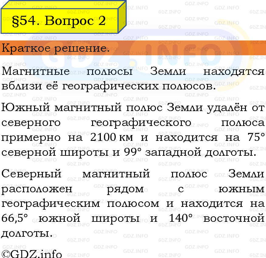 ГДЗ (готовое домашние задание из решебника) по Физике 8 класса авторов И. М. Перышкин, А. И. Иванов, Просвещение, 2023-2025г. ФГОС на Вопрос №2, § 54. Магнитное поле Земли.