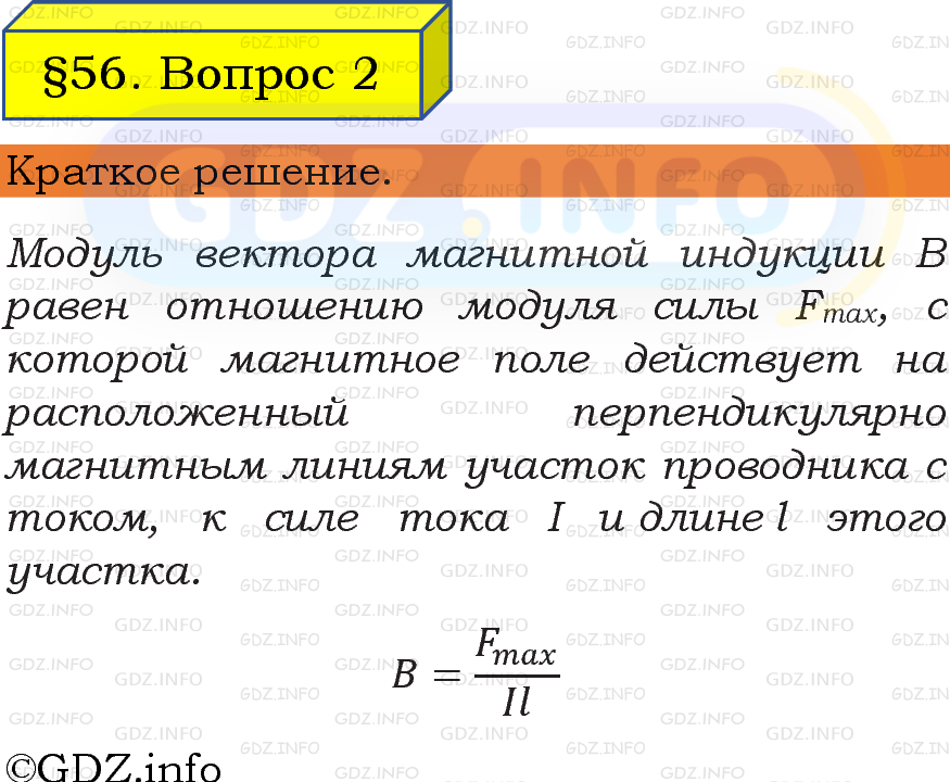 ГДЗ (готовое домашние задание из решебника) по Физике 8 класса авторов И. М. Перышкин, А. И. Иванов, Просвещение, 2023-2025г. ФГОС на Вопрос №2, § 56. Магнитная индукция.