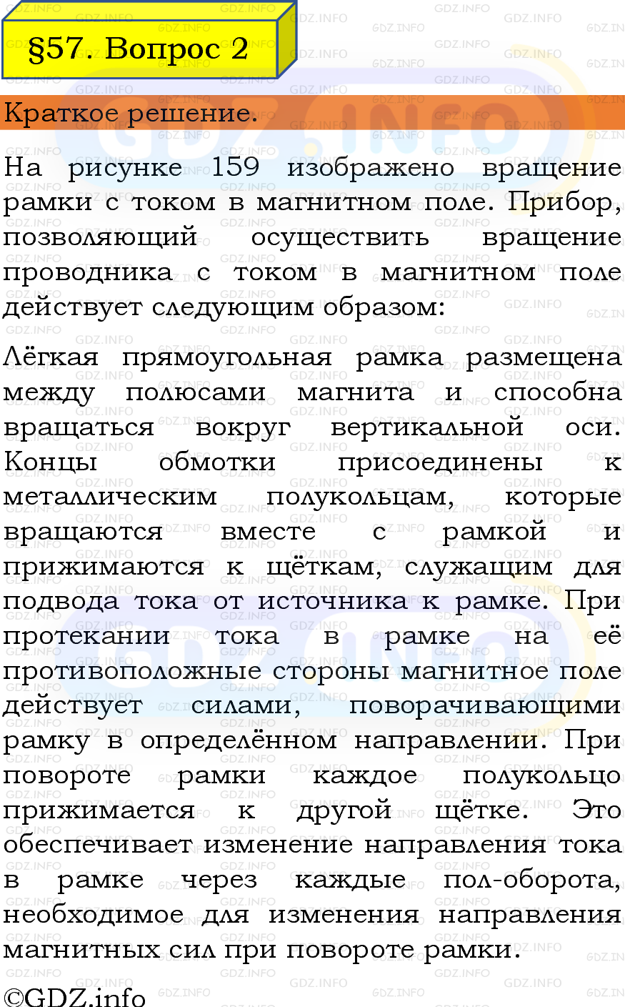 ГДЗ (готовое домашние задание из решебника) по Физике 8 класса авторов И. М. Перышкин, А. И. Иванов, Просвещение, 2023-2025г. ФГОС на Вопрос №2, § 57. Электрический двигатель.
