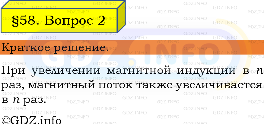 ГДЗ (готовое домашние задание из решебника) по Физике 8 класса авторов И. М. Перышкин, А. И. Иванов, Просвещение, 2023-2025г. ФГОС на Вопрос №2, § 58. Магнитный поток.