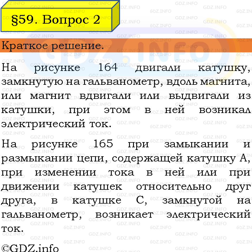 ГДЗ (готовое домашние задание из решебника) по Физике 8 класса авторов И. М. Перышкин, А. И. Иванов, Просвещение, 2023-2025г. ФГОС на Вопрос №2, § 59. Явление электромагнитной индукции.