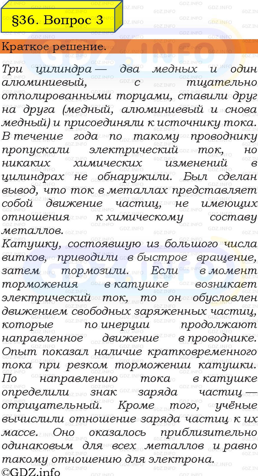 ГДЗ (готовое домашние задание из решебника) по Физике 8 класса авторов И. М. Перышкин, А. И. Иванов, Просвещение, 2023-2025г. ФГОС на Вопрос №3, § 36. Электрический ток в металлах.