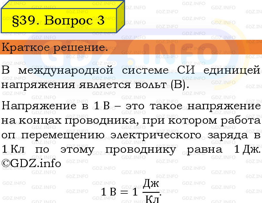 ГДЗ (готовое домашние задание из решебника) по Физике 8 класса авторов И. М. Перышкин, А. И. Иванов, Просвещение, 2023-2025г. ФГОС на Вопрос №3, § 39. Электрическое напряжение. Вольтметр.